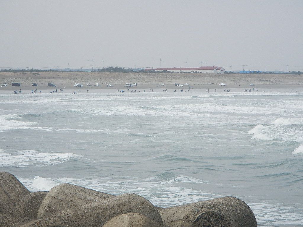 天候も良く大潮だったために、砂浜に大勢の人が押し寄せて、潮が引いた海岸でのハマグリ獲りを楽しんでいました。