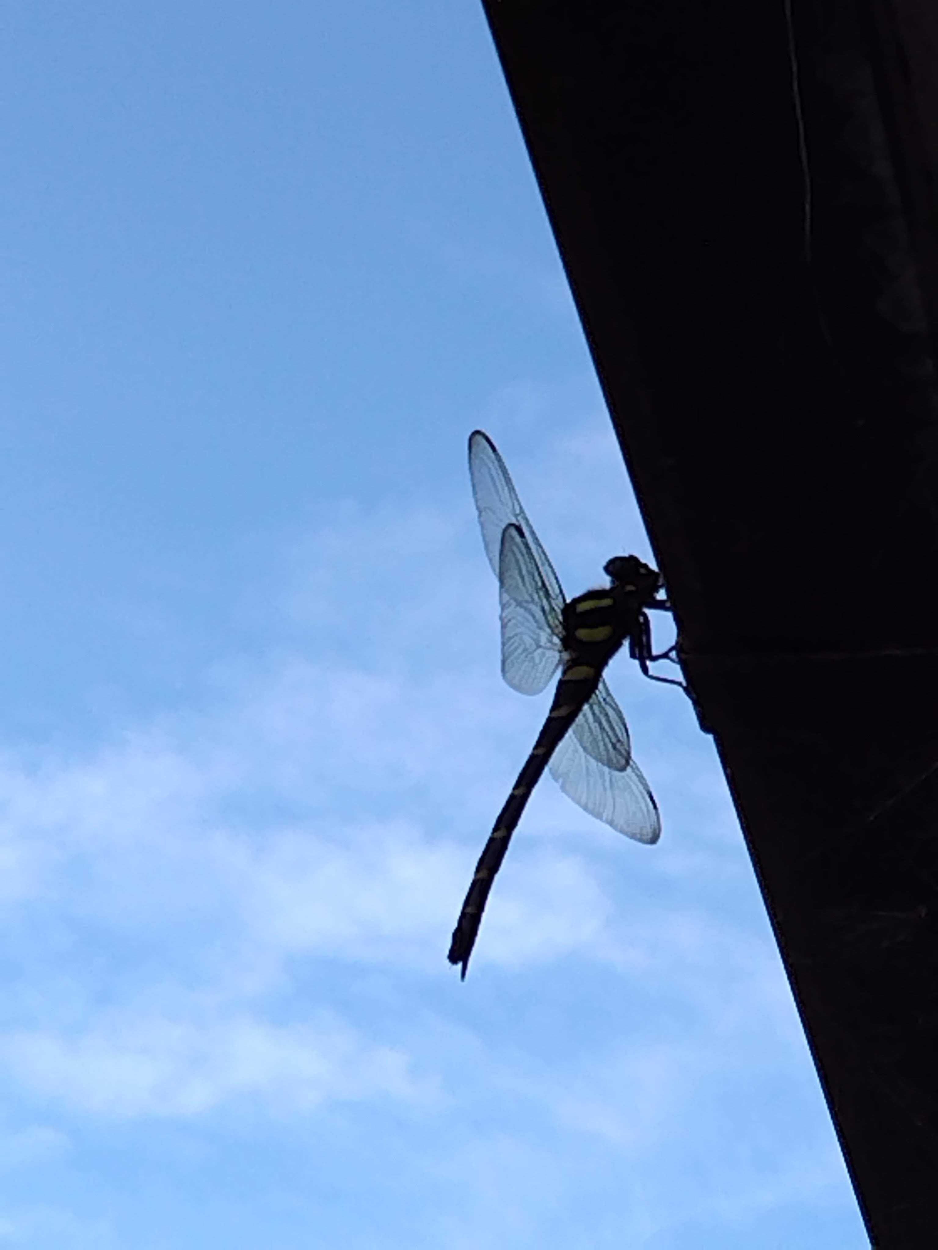 8月に入って、標高100mにある我が家もめちゃくちゃ「熱く」なって一番困っているのが「両隣の部屋からのエアコン室外機の熱風」!!!というのも、私は、ベランダでニホンイシガメ(カメさん)を飼っているのでエアコン室外機の熱風がカメを直撃するからまったくエアコンを使っていません。なので、夜も窓を開けて寝ているのですが窓から入ってくるのが、左右の隣室の室外機から出る熱風交じりの風…ホント、熱帯夜です。それも、これも、あれも・・・理由はたくさんあるのですが丸10年住んだ今のワンルームマンションから引っ越すことにしました。すでに、次の家の契約、今の家の解約を済ませています。引越のメリットとしては1.次の部屋のベランダが広くなるので、カメさんが伸び伸び生活できる2.ベランダの形を活かして、私もエアコンをつけることができる (カメに室外機の排熱が当たらないような工夫ができる)3.今の最寄駅は各駅停車しか停まらないけど、次は急行が停まる4.通勤時間が少し短縮できる引越のデメリットとしては1.山の中腹にあるので、とにかく「坂」2.今は徒歩3分のコンビニで買い物できたけど、遠くなる(しかも坂)3.今の家は、ベランダから「どんどこまつり」の花火が見れたけど、次は角度的に無理4.駅、スーパー、コンビニ、・・・どこへ行くにも「坂」・・・う~ デメリットのほうがでかい気もしますが10年住んで、納得いったから、ボチボチ引っ越し時かな~と。引っ越す前に、冬物衣料などを「サマリーポケット」に預けて使ってないブランド品+衣類を「エコリング」の買取に送って読み終わった本を「バリューブックス」と「ブックオフ」へ送ってなるべく荷物を減らすようにしています。ホント、引っ越しって、マジで断捨離・デトックスですね そんな今日、在宅勤務をしていてベランダに何かが来た気配を感じたので見に行くと・・・でっかいトンボがぶら下がっていました。このサイズはオニヤンマ、見た目からたぶんメス。全然飛ばないので、最後はこんな写真が撮れました。※トンボは、確認場所、色、大きさ、止まり方などから、種類が推測できます