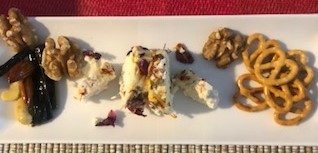 ラベルの花の模様もチーズに合っているようで、スライスしたチーズをミニ・プレッツェルや