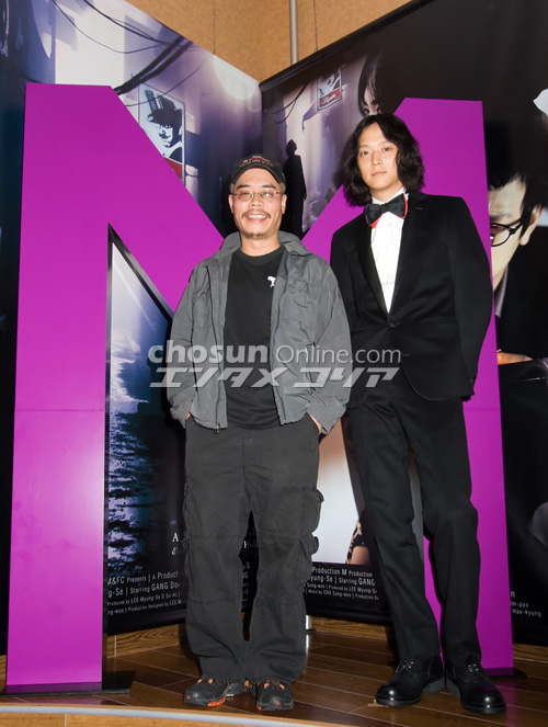 「韓流シネマ・フェスティバル2008ラブ&ヒューマン」が27日(土)、東京・六本木シネマートで開幕。オープニング作品『M(エム)』に主演するカン・ドンウォンとイ・ミョンセ監督が挨拶に立った。 ミョンセ監督作にドンウォンが出演するのは、『デュエリスト』以来3年ぶり2度目。雑誌のインタビューでドンウォンが“モンスターになりたい”と語った記事を読んだことがあるというミョンセ監督は、「すごく素敵な話だと思った。彼がモンスターになるのにひと役買いたいと考えたのです」と明かした。 ドンウォンは、「ようやく役者としての出発点に立てた時期の話で、だれかに似ていると言われるよりも比較対象のない“カン・ドンウォン”という存在になりたくて、“モンスター”という言葉を使った」と照れ笑いを浮かべた。 ドンウォンとの精神的なつながりを強調するミョンセ監督だが、「話がずれたり飛んだりするところも、豚肉のクッパが好きなところも共通点。僕らは内面的にも外見的にも似ているんじゃないかな」と胸を張ると、場内の女性ファンから失笑が漏れた。 エスピーオー配給で、12月20日(土)から同館で公開。なんだか、この場面が想像できちゃう^^このミョンセ監督のコメント・・・この六本木の髪型と雰囲気☆いいねェ^^髪の長い、彼。・・・・・おお・・・・・ウエーブ、こうなってたんだぁ(なぜか、妙に納得)