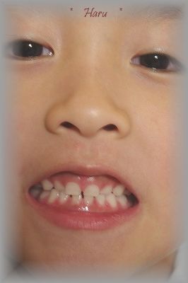 ハルの歯~。2年生になっても全然抜けないハルの歯、、。ハルも気にしちゃってさ~でもいずれ抜けるから…って まだまだ子供の歯です~4月24日☆って見たら~後ろから歯がでてきてる!見える?わかりますかねえ~? 気になったので歯医者さんへいこうと思った矢先~虫歯がありますと学校から通知があって~ビックリ。ちょっとショックでした。なので虫歯の治療と共に見せてきて~しばらくすれば抜けるでしょう~って先生。したら~5月13日に抜けました!!したらまた~隣にも歯が出てきて~様子をみていたら~5月28日にこれもめでたく~抜けましたぁ☆あとは虫歯の治療です。。2回ほど通いまして~左の上下を治療していただきましたよ~。 治療の話… 初回は機械の説明をしてくれて~機械を口の中にいれてこうするんだよって機械の音を出して慣れさせていただきました☆初めての子供にはそういうことありがたいです! そして二回目~左上の歯を治療してもらいました~。ちょっと緊張しているハルを見ながら~。ちゃんとじっとしてるハル~。治療が終わって~「上手だったね~ハル!良くできたね」ってアタシハル…にっこり~。「幼稚園生じゃなく二年生だから大丈夫ですよ。おかあさん!」って先生アタシ…いつまでもハルが小さいと思っちゃうのよね(笑) そして3回目左下の歯の治療も無事終わって~あとは、はみがき講習です~☆ 上手に磨けるように~アタシも仕上げみがき頑張ります!仕上げみがきをサボってたアタシが悪い、、。反省です。。