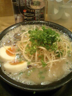 博多ラーメンらしく豚骨スープ・細麺なんですが、とってもおいしかった♪ぽっ