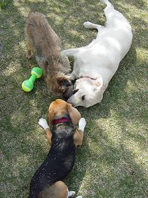 昨日は りんのお友達のお家にお邪魔しました文字通り邪魔しに ( ̄皿 ̄)うしししし♪ビーグル姉妹の わかめちゃん と まりもちゃん は りんの大切なお友達アジリティーに励むSPORTS派のお嬢さんたち (りんは見学派)大会にも出てますよ↓ DOG SPORTS ジャーナル姉のわかめさんは もうすっかり落ち着いていて お子ちゃまのくせにバカ力のりんの相手は「疲れるだけ」と悟られております スバラシイ☆ 正解!妹のまりもちゃんは りんと同じ年いわゆる下の子根性でたくましく アイドル的素質タップリです↓アイドルってゆ~か女優? カメラを向けるとポーズをとってくれます3匹集まると いつも行動は決まっていて わかめちゃんは 自分のスペースを確保してお昼寝 まりもちゃんとりんは 鬼ごっこ&プロレス 凸凹コンビですね!う~んっ カメラ持参で行ったのに ブレブレで全然撮れなかった・・・だって 止まっているのは「わかまりママ手作りバナナクッキー」を頂いたときだけなんだもん・・・わかまりちゃんを見ていると あぁ~うらやましい大家族!って思います1匹多いだけで違うんですよね 今回お邪魔した理由は 共同購入しているお肉がわかまり家に届くからGEN-MEATさんで 毎回交代で注文していますお肉というのは 犬用ですのよっ 人間用もついでに買いますけどあくまでも お嬢さんたちのお食事用です ↓ 馬・牛・羊・鳥・鹿などなど・・・手作り食 頑張ってますよっ♪ 頑張って手抜きした「ごはん」ですよ♪りんは何でもウマウマって言ってくれます♪「お母ちゃんの手作りウマウマ! あのカリカリしたやつとかね♪」・・・・・それ 業者さんの機械造りですから・・・・・(-"-;A 早い話が りんは何でもいいようですね 悲しい(T_T)残したことないし いつも食べ終わると「おかわりー」って言ってるし・・・(・-・)・・・ん?栗原はるみ先生の本でも読もうかしら・・・ごちそうさまが、ききたくて。意味が違いますね・・・これで冷凍庫はパンパン! 次回はりん家の当番です。わかちゃん まりちゃん 遊びにきてね~ Uo~ェ~oUノε==3