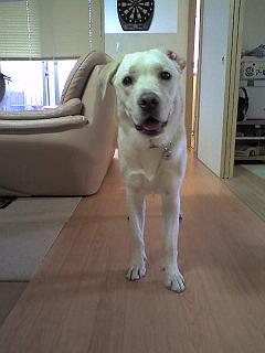 「りん」 という名前はお花の 「りんどう」 からとりました「りんどう」の花言葉が「正義」だったからです 大型犬たるもの 正義を行使できねばならぬ! と!! 弱きを助け 強きを挫くのじゃぁーなぁ~んてっ 如何にも考えあぐねた名前のように言っとりますがこれ実は・・・りんを家に連れ帰った日 慌てて考えた即席の名前花言葉を調べたのはホント!りんとご対面するまでは「すももちゃん」と決めていたんです我が家のペットは植物の名前 と私の祖父の時代から決まっております(歴史が長いからさ~ もう無いよっ そんなに植物って知らないもん!)でもねでもねでもね・・・初対面で私たち夫婦は悟りました「すももちゃん」てなカワイイ名前はハズカシすぎる と・・・・だって ブサイクだったんですもの・・・・ キッパリ! ほらねっ♪・・ビックリしました デカイし・・・生後50日っすよ!その後 順調に「ゴジラ」に変貌したものの (・・。)ん? 何故か「ボスの風格」が出てきたので「石原プロ」に入団させることにしました スカウトされる日を夢見て 「舘ひろし」風にガンショルダーをつけてみましたハーネスだろっ! そして日夜トレーニングに励むこと1年半 ←ウソその甲斐あってか 最近のりんちゃん 筋肉ムキムキ犬 に・・・競輪選手のような太ももになってしまった・・・どうやら「石原プロ」と「JAC」を間違えた感がありますね 残念ながら 舘ひろしから 大きくかけ離れてしまいました あの頃のガンショルダーも もう入らないし・・・・だからハーネスだろっ!じゃあ 最近のりんってめざせ真田広之なの??? でもアクションは無理よ♪う~んっ ( ̄~ ̄;) ウーン違うなぁ~ でも何かに似ている・・・・あっ! 分かった! あれだ! なかやまきんに君きんに君ならぬ りんに君です!! な~か~や~ま~りんに君です! なかやまじゃねーだろっ! 1、2、3、パワー! さあ来い!さ~ぁ来い! りんの筋肉! あっ分からない人の方が多いですね・・・「普通が一番ですよっ フツウが・・・」ってゆー アリコ子供保険の坊やに1票!↑りんは フツウの犬です