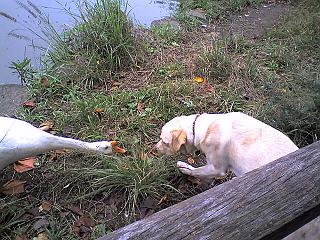 基本的には コワイものには 気づかないフリ! これ りんの基本です吠えている犬なんかに出くわしたときには 気づかないフリ!私と飼い主さんがご挨拶していても 気づかないフリ!徹底的に 気づかないフリ!犬以外では・・・ ヨチヨチ歩きの乳児 奇声を発しているとなお恐怖 毛を逆立ててご立腹中の猫 まちがいなくりんを威嚇しているなどなど… 世の中コワイものだらけ です!しか~し これが不思議なことに 相手が「犬」か「その他の生物」かで りんの最初の行動は変わります「コワイ犬」・・・かなり遠くから 気づいていない芝居に入る 女優魂 で!「その他の生物」・・・ご挨拶しようと 直前まで張り切る! でも 撃沈きっと 犬以外の方々は間近で 一応確認だけはしておきたい と言うことなのでしょう!例えば・・・生まれて初めて 「ガチョウさん」 とご対面したときのことです「カモ」は見慣れているりん「でかい鳥=でかいカモ」という図式をもとに 勢いよく挨拶に行ったのですが…「あっ カモさんじゃない!?」としばしフリーズ そ~っと そ~っと 「この辺りをクンクンしていただけですよ~」 と後じさろうとするも「ぐがぁ~」と鳴かれて ビックリ!!コワイ~っと またもやフリーズ そして お約束の へっぴりまたこんなことも・・・いつも猫をみつけると 挨拶したくてたまらないりん でも 威嚇されて 気づかないフリ・・・では 友好的なニャンコ とは お友達になれるのでしょうか?! う~んっ やっぱり ヘッピリ 後ろから 攻める姑息なヤツ正面きって ご挨拶が出来ませんでした… やっぱり 気づかないフリしちゃいました…なんでだろ~~~~~~~~~~~~~~~~~~~~~~~~~~~~~~~~~~~~~~~~~~~~~~~~~~~~~~~~~~~~~~~~今月はランキング強化月間です 1ヶ月くらい 頑張ったってイイじゃないか!? 応援してくれている人もいるんだから! とりあえず「クリック」してください ←紳士淑女のみなさん こちらですぞっ