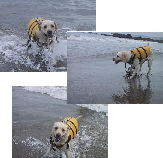 連休最終日は りん家にとって 名実ともに 海の日 でした・・・イキナリ余談ですが・・・海の日が7月の第3月曜日になって 3連休になったのは良いけれどそれって 梅雨明け前じゃん!って誰も思わなかったんだろうか・・・案の定 全国的に雨 となった 今年の海の日 なのでありました・・・ りん家は それでも 賑わうかも?!と かなり早くに出発早朝 6時半のりんさんは 三浦海岸でこんな感じ↓ バッチコイ!まだ雨は降ってなかったし 少し薄日も差していたから早朝海水浴は 正解♪9時には帰路に着いたので 人出の有無は知らないけれど午後はかなりの雨だったから きっと海の家は商売あがったりだったと思いますさて りんさん 海水浴は大好きなのですがまだまだ 「泳ぐ」 という行為が 得意ではありません泳がせれば泳ぐのですが そこはやっぱり へっぴり犬 足が着かないところは コワイ ようですなので今は 父に連れて行かれて 嫌々泳いでいるのが実情 自分から スイスイ泳ぐようになるのかなぁ~ ( ̄へ ̄|||) ウームナイなっ! へっぴりん だから! そんなりんちゃんの 水遊び必須アイテムがこれ! ロープ付きサッカーボール陸で遊ぶには大きいし レトリーブするには重いのですが水の中での 浮力 は抜群! くわえると顔が沈まないので 泳ぐときには欠かせません 必死になって咥えます (笑) ライフジャケット・・・着せてるのに・・・・大きいので見失わないし 重宝しております 今年の夏は できるだけたくさん 早朝海水浴に連れて行ってやりたいそして 泳ぎの楽しさを知ってもらいたいそれが 父と母の願いなのです