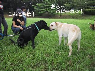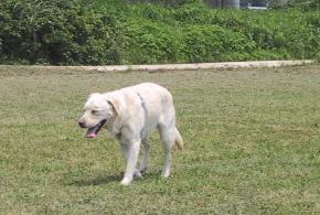 3連休が終わりましたねなんとも 虚しさ だけが残る この連休明け「あぁ~楽しかった よしっ 心機一転 頑張るぞっ!」 d(@^∇゚)/♪とか思える人っているのでしょうか?いたら スゴイ! と思うのは私だけだろうか・・・・この連休は 梅雨前線の影響で 被災された方もたくさんいらっしゃるようですね今日もまだ 土砂災害や河川のはんらんに注意が必要な地域がたくさんありますお見舞いを申し上げるとともに ご自愛なさっていただきたいと切に願いますここ神奈川では 昨日の午後から 強い雨 がふり始めました今日も一日 雨 だそうです結局 降ったりやんだりの3連休となりましたさて そんな折折 りんさんはと申しますと・・・・結構 楽しんでおりましたりんにしてみれば お父ちゃんが休みってだけで心躍ることなのですが犬友と公園で遊んだり 海に泳ぎに行ったりと 休日を満喫♪今日は 犬友と行った公園での出来事を 少しご紹介したいと思います16日の日曜日 以前にも行ったドッグラン(参照記事→「りんのドッグラン活用法」)に行く予定だったのですが 天候不順で中止に・・・替わりに 横浜市内の 都筑中央公園 に遊びに行きました少し降っていた雨も止み 何とも蒸し暑い夕方となりました広い公園を歩いていくと すり鉢状の広場に到着すると 広場の木陰に 黒ラブを発見!近づいてみると まだ子供! 10ヶ月の男の子 でした 年上にはめっぽう弱いりんですが 相手が子供とわかると 余裕をブッコクのもりんさっそく お姉さんかぜを吹かせ始めました・・・ 分かりやすいっ (-"-;Aどうやら 鬼ごっこのレクチャー を始めるようです 『ほらっ! お姉さまについてらっしゃいっ! 鬼ごっこの仕方を教えてあげるわっ 私に 追いつくことができるかしらっ オーホッホッホッホッ』となることを 想像 していた(と思われる)りんさんですが・・・運動音痴なりんさんは この上なく 足が遅い・・・普段は小型犬と遊ぶことが多いので あまり気になりませんでしたが今回の相手は 子供と言えども大型犬 ピッタリ とついて来られてしまいました・・・・必死に逃げたのに 振り向けばヤツがいる ΣU゚д゚;U ヌオォ!? 結局 りんが クタクタ になっただけで お姉さまの威厳たるものは 欠片も見せることは出来なかったとさっ 残念・・・しかも・・・黒ラブちゃんファミリーの小学生のお子ちゃまに「足が短い」 とまで言われておりました・・・聞こえないフリをした 父と母でした・・・涙 (ノд-。)クスンりんの名誉の為 に言っておきますがりんの足が短いのではなく 黒ラブちゃんの足が長いのです! 君ん家の黒ラブちゃんは フィールド・タイプりんは ショー・タイプだから・・・りんの体型は スタンダードなのです!!! ・・・・ (* ̄∇ ̄*)エヘヘ たっ たぶん・・・