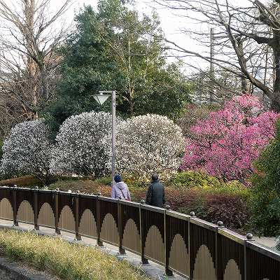 梅の花の季節で、どちらにも満開の梅が咲き誇っていました。
