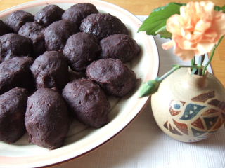 おはぎ作りに初挑戦!ごらんになって気が付いた方もいらっしゃるでしょう。寿司の握りの小さいものからおにぎりくらいの大きさまで形がいろいろです。 (~_~;)恥ずかしいけれどご近所におすそ分けしました。どんな返事がくるでしょうか。味見していただいた後に私が作りました なんて言ったら苦笑するかもまあ まあ 上出来 でしょう。アンコはチョット甘すぎでしたが・・・。