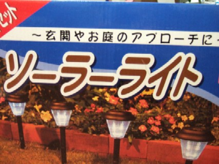 玄関先に設置したソーラーライト です。昨日の自宅前の通過も考慮し取り付けて見ました。これで また 素通りしたらどうすりゃ いいんでしょうか。笑これ 暗いところで 6時間ほど持続するらしいです。とりあえず 4本 です。(写真では1本隠れています)