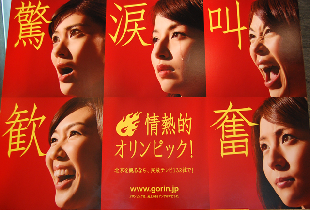 北京オリンピックが終了しました。情熱的をテーマにしたCMにピッタリのオリンピックだったような。写真はCMに出ていた民法キー局の女子アナ5人です。最初にTVで観たとき一人5役かと思ってました。良く表情が出てますね。