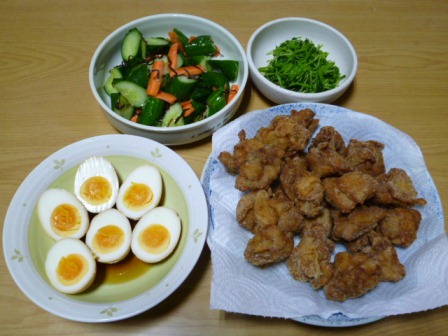 今夜のメニューは、・「鶏のから揚げ」・「味付け卵」・「豆苗のお浸し」・「キュウリとニンジンの塩麹漬け」2日連続でお魚中心だったので、今日はがっつりお肉揚げ物の誘惑には負けちゃいます野菜もしっかり摂るようにしてるのでということにしておきましょうレンジでチン♪で完成だからとっても簡単!こだわり抜いた醤油ベース♪柔らかくてジューシーな鶏唐揚げ≪鶏唐揚げ≫醤油ベース【黒ザンギ】5個入り 【2sp_120314_b】レンジでチン♪で完成だからとっても簡単!お子様も大好き!あっさり塩味★柔らかくてジューシーな鶏唐揚げ≪鶏から揚げ≫あっさり塩味【白ザンギ】5個入り 【2sp_120314_b】レンジでチン♪で完成だからとっても簡単!柔らかくてジューシーな鶏唐揚げ≪鶏から揚げ≫ピリッと美味しい!【赤ザンギ】5個入り 【2sp_120314_b】