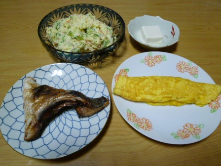 今夜のメニューは、・「ブリカマの塩焼き」・「チーズオムレツ」・「ポテトサラダ」・「冷奴」ブリカマの塩焼きスーパーで見つけた特売品で、これひとつが100円なんですいろいろ考えましたが、シンプルに塩焼きにしました。骨の周りとかがおいしいんですよねぇ業務用 メガ盛り1kg!激安 国産活〆はまちカマ 約4~6尾分カマとはエラからアゴの部分です。ヒラス(ひらまさ)カマ 8切【0603_point】【RCPsuper1206】