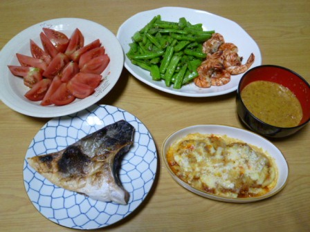 今夜のメニューは、・「ブリカマの塩焼き」・「ポテトグラタン」・「納豆」・「いんげんと海老の炒め物」・「トマト」アラとかカマとかそんなのばっかりですね夏野菜料理3品・「ポテトグラタン」・「いんげんと海老の炒め物」・「トマト」食材費はゼロ(ってことはないですね畑の世話をしてくれてる母に感謝です)毎日せっせと食べますよ~送料無料!ほっくほく!養豚場が良質な堆肥をふんだんに使用!12年度新じゃがいも(きたあかり)10キロ☆生産者が販売!【販売中】送料無料12年度新じゃがいも(キタアカリ)古川養豚場産10キロセールじゃが芋(きたあかり)いんげん豆 インゲン 隠元九州産 【いんげん】 ★安心安全野菜贈答にも喜ばれてます!おいしいトマト!A品贈答にも喜ばれてます!おいしいトマト!A品