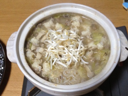 またまた鍋です10日前にしたばかりの餃子キムチ鍋今日は天気予報では雨だったのに雪になっちゃいました(天気予報は嘘ばかり)ストーブをガンガン焚いても底冷えして寒いですこういう日はやっぱり鍋になっちゃいますね。『桃屋キムチの素』を使えば簡単万能辛味調味料です!桃屋のキムチの素 620g【東北復興_福島県】お料理いろいろ桃屋のキムチの素 朝鮮漬け(620g)キムチ鍋・炒め物にも!!…今日は大掃除をしましたよ~まあ汚かった(雑巾が何枚も真っ黒に)こまめに掃除するのが来年の目標です