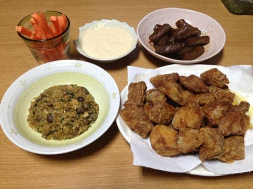 今夜のメニューは、・「豚肉の竜田揚げ」・「炒飯」・「こんにゃくの甘辛煮」・「ニンジンスティック」(明太子マヨで)豚肉の竜田揚げと炒飯豚肉の竜田揚げは下味に生姜をたっぷりと効かせました。香りが良くて、ビールにぴったりでもたくさん作りすぎちゃいましたね明日は余ったのを酢豚にしようかな炒飯は先日作ったむかごご飯で作りました。残り物の再活用です豚肉の本場、宮崎県から銘柄豚・観音池ポーク下ロースブロック(かたまり)でお得に1kg【豚肉】【銘柄豚】宮崎県産・観音池ポーク 特上豚ロースブロック1kg【三元豚】【豚しゃぶ】【しゃぶしゃぶ】【トンカツ】【ご当地】【国産 宮崎県産】【豚 業務用】【豚肉 ブロック】【RCP】【グルメ201212_食品】【FoCou1214】豚肉の本場、宮崎県から銘柄豚・観音池ポークの肩ロースブロック(かたまり)でお得に1kg【豚肉】【銘柄豚】宮崎県産・観音池ポーク 豚肩ロース ブロック1kg【三元豚】【ご当地】【国産 宮崎県産】【豚肉 業務用】【豚肉 ブロック】【カレー】【RCP】【グルメ201212_食品】【FoCou1214】【10,000円以上の同梱注文で送料無料※北海道/沖縄県宛除く】【お歳暮】 かごしま黒豚 腰ロースの端っこブロック 1kg 【41%OFF】【国産】【豚肉】【最高級】【ブランド】【純粋六白】【かたまり】【はしっこ】【訳あり】【わけあり】【楽ギフ_のし】【楽ギフ_のし宛書】