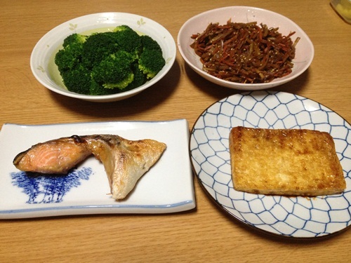 今夜のメニューは、・「鮭カマの塩焼き」・「豆腐ステーキ」・「きんぴらごぼう」・「ブロッコリー」昨日がちょっとしつこかったので、今日はあっさりと和食です今日のヒットは豆腐ステーキ木綿豆腐を1センチ程度の厚さに切ったものをフライパンで焼いて、甘辛く味付けしただけなんですけどお肉のステーキにはさすがに及びませんが、結構満足感はあります国産丸大豆、にがり、自然水のみで堅く仕上げた昔ながらの木綿豆腐。にがり以外の食品添加物は無添加。お豆腐の椿き家 堅もめんむつみ 国産大豆100%とうふ 木綿 170g×2 ★冷蔵国産大豆100%使用|低温殺菌製法極上木綿豆腐