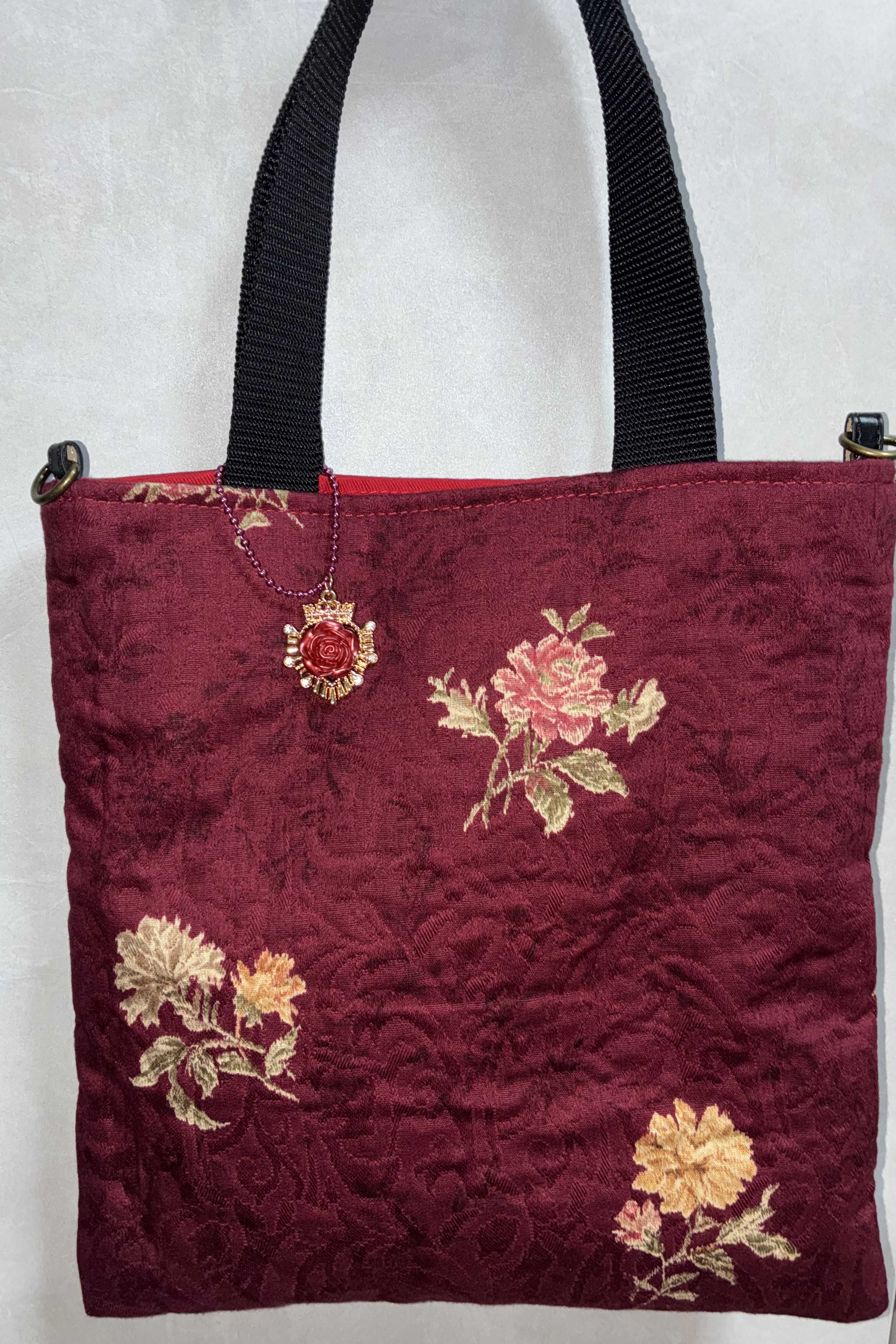 !表生地 トランプ柄、千鳥格子柄、赤色無地、バラ柄、後ろ面 厚手凹凸デザインバラ柄