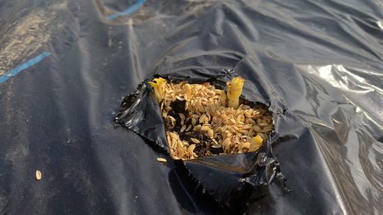 土曜日夏野菜植え付け畝作りは終わっているのであまりやる事はないのですが、一応畑へ大根畝の除草と追肥シソの種蒔き、青と赤シソは撒かなくても時期になれば出てくるんですが一応あとはスイカ畝作り(よく見ると忘れてた様な気がして)冬前にトウモロコシの茎を埋めておいたが、まだ分解してなかった・・・とりあえず、苦土石灰+牛糞+等々を撒いてマルチシート掛け来週、平日休みの日にGW植え付け予定の野菜苗買って来よう