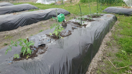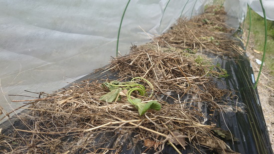 もうGWなんですね~やっと暑くなってきたような玉ねぎにアイツがやってきたので農薬散布今日一番にやっておきたかった事シシトウ、ピーマン畝シシトウ苗追加 計4本オクラ4株ズッキーニ3株メロン2株玉ねぎの葉でウリハムシ対策写真撮り忘れのスイカ 大玉1 小玉2あとで大玉1追加予定落花生8株まで芽が出てないので種撒きなおし青シソ2株サンドマメ5株キュウリ4株夜の寒さ対策でアンドン掛けてます玉ねぎの葉で初期のウリハムシ対策5月中頃に植え付け予定のサツマイモ畝作り貝殻石灰+草木灰+牛糞+もみ殻+雑草を積み上げた下の土を追加マルチを張って植え付けまで置いておきます全く大きくならなかったスナップエンドウですがなんとか収穫