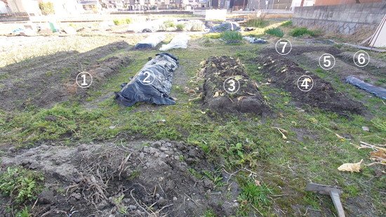 寒波が過ぎ、やっと暖かく?なってきました。夏野菜畝作りの為の確認作業に畑へ。①②は秋から寝かせてあった畝(野菜くず入れてた気がする)③菜花畝④小松菜、ほうれん草畝⑤⑥⑦新たに作った畝去年植えてたのは①ピーマン、獅子唐(ナス科)②ナス(ナス科)③トマト(ナス科)④トマト、メロン(ナス科)ナス科しか植えてない・・・どこに何植えようかな今考えてるのは⑤メロン(少量・空中栽培)⑥はサトイモ⑦は落花生他①~④は去年のままでもいいが①きゅうり②ピーマン、獅子唐③ナス④トマトこの2つの畝は1つにして(半分程度まで)トウモロコシ植えよう残りの2畝には枝豆と何か?土筆が出てた