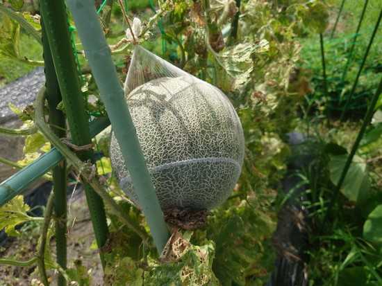 こんな大きさのメロン3個収穫収穫後、メロン棚を撤去し畝作り所々で伸びている雑草を刈って終了木曜日に植えた白菜先週植えた玉レタス