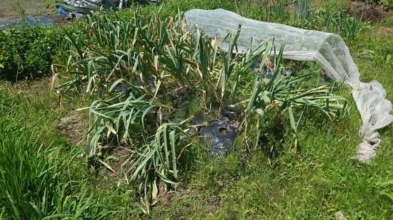 土曜日は1日中雨雨が止んだ日曜日サトイモ畝の周りは水溜まりやっと芽が出てきた、あとはショウガの芽がでてくれれば今年初めて植えたズッキーニ大きくなってきた、植える間隔間違えたかも収穫時期のニンニクだが、雨後なので収穫出来ず1本だけ収穫してみたら結構いい感じこの時期の葉物は花芽が出来るの早いねトウモロコシは一気に大きくなってきた間に植えた枝豆は摘心しておいたトマトも大きくなってきた脇芽取り忘れてたら大きくなってた
