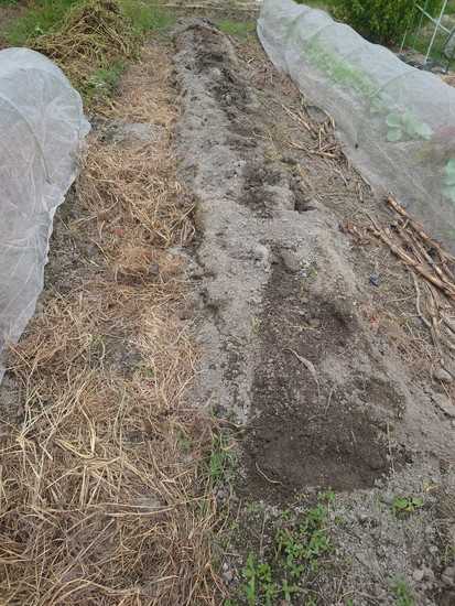 小松菜やほうれん草の畝作りと言っても、石灰∔堆肥を撒いて耕すだけその前に、隣のおばさんから長ネギをもらったので植え付け畝の中央に溝を掘って植え付けニンニク植え付け用ほうれん草や小松菜用まだまだ畑仕事をするには暑すぎる
