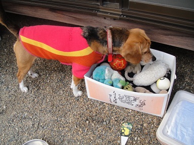 地震のあった日、書いて下書きしたままになっていた日記です。地震の日、長いお出かけから飼い主帰宅の時のカンちゃんです+小屋から出てきてまずブルブルブルっぎゅ~っと伸びをひとつ あれ?何持って出てきたの?ガムです。出かける前に退屈しのぎのためにあげたガムやっぱり帰るまで置いてました。9時間も早く!あそぼ!!ガム投げ遊びがしたかったのかなぁ?それよりカンちゃん・・・お洋服ものすごくずれてますが。。。。ゞ( ̄∇ ̄;)退屈の果て、フードのふちをちょっとかじってたべてしまっていました。 そんな話をカンちゃんとしている時にゆらゆらっとこちらも少し揺れました。たまたまいた夫もカンちゃんも感じませんでした。 地震の時お留守番をしていたワンちゃんたちのことを考えると本当にいたたまれない気持ちになります。飼い主の元に戻れたワンちゃんが一匹でも多いことを祈っています。ぐらんわん!さんで支援物資の募集をしていますにほんブログ村