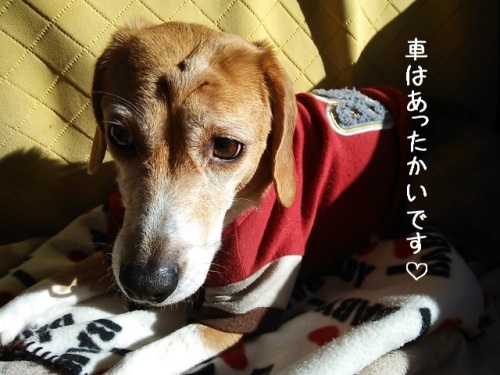 晴れた日は車に乗っかってついてくるカンちゃん。冬でも車の中はあったかくてお顔もノビノビ~?昨日は一日中雨で・・・・お外の小屋では一歩も歩けないし朝のお散歩のあとはあんよ洗ってお薬塗っておうちのケージにあんよ舐め舐めするので、エリカラつけて狭くてエリカラ当たって可愛そうなので短くつないでみたカンちゃんに背中向けてフローリングにちょっと立て膝?で座って用事していたら なんか重たくなった・・・・足の間にカンちゃんが座ってた~(幸)そのまま伏せてネンネすんの~!?(超幸)足洗ったり 掃除機 コロコロ 頻繁だけど こりゃぁ幸せやぁ~ 今日はお日様出てくるかな?春が待ち遠しいカンちゃんにクリックトントンお願いですU^ェ^U ワン! にほんブログ村