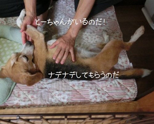 夜、一眠りしたカンちゃんがこっちみて座っていたので かまって欲しいのかな?と思って(9時過ぎに一眠りしてスッキリして庭で遊びたがることがある)「ポンしよか?」「お水飲んでくる?」ふたつ話しかけたら、フンフン!とノリノリの目?感じ?になったので 「お水飲んで、ポンとっといで~!!」と言ってみました。パパさんが面白そうに和室から見ていました。まだ行かないので 二回ほど言ってみたらカンちゃん、網戸をガタガタ言わせて外に飛び出して行きました。そのあと「ジャブジャブジャブ!!」とお庭からお水を飲む音。パパさん、「お~すごいなぁ。飲んでるなぁ」「お水飲んだらポンもっといで!」と声をかけましたそしたら 網戸の下からガガガ!!っとサメのpon咥えて帰ってきたよ~!とーちゃん大喜び。 「わかっとるんやなぁ??」二つの用事ってさぁ・・・私でもひとつしたらもうひとつは忘れて来るけどねぇ。お水飲んだあと、 ポン持っておいで~って言わなかったらどうやったかなぁ。++++とーちゃん一緒の散歩 お散歩中に抱っこするわ道で座るわ甘えん坊にデレデレ・・・↓押してね↓にほんブログ村