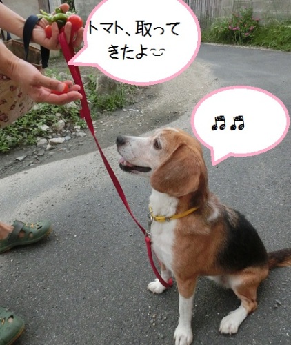 *コメント滞っていますが* 散歩の帰り、畑に寄ってオクラ二つ、ししとう二つ、トマト4個取ってきたよ。もうあんまりないね。畑。カンちゃんの分は少し傷のついてたトマトだけどごめんよ~美味しいね~甘いね~このあと、たいていこうなります。この↑お口。 トマト咥えてます お庭のココでゆっくり食べるのがカンちゃん流らしいです。トマト好きのカンちゃん 夕飯にもトマト良く入りますトマト 牛赤身 ぬか漬けちょっと(発酵食品) なめこちょっと ごはんドッグフードとハーフ&ハーフで ピカピカになめなめ、しばらくの後また舐め舐めしていました カンちゃんの苦手はレタスです↓押してね↓にほんブログ村