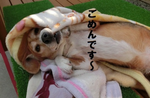 反省モードのカンちゃんです。 先週ふうちゃんのママが遊びに寄ってくれた時。母ちゃんとふうちゃんママがおしゃべりしているのをお膝に乗って聞きながらうとうとしていた至福の時のこと。。。うとうとしちゃったときだよねやっちゃったねぇ・・・・冷たいなあと見たら、これはもしや。。。。ってなったんだよねさっきまでの幸せモードの顔と一変私が何回も「くちゃいのドコ!?」「これだれがしたん?!」と聞くので、カンちゃんもう、どんより。ふうちゃんのママに言わんといたりー!! と言われました。いやぁ。。。申し訳ないことでした。それでもこのあと、ポンしようか! となったら一気に元気なシッポがフリフリ。これだから ビーグルのしっぽは好きですU^ェ^U ガオかあさんがお休みしてるからだけなんだけど「まぢ!?」な2位を経験中↓押してね↓にほんブログ村