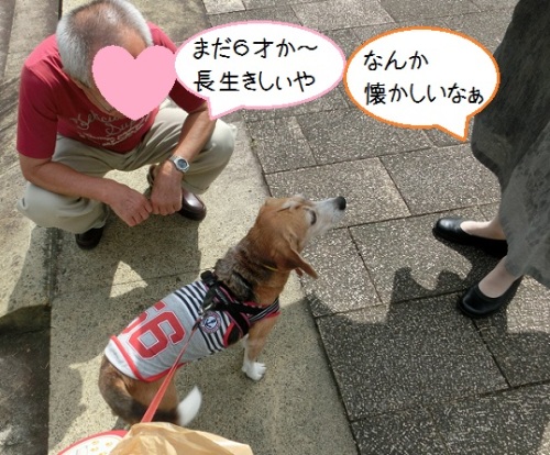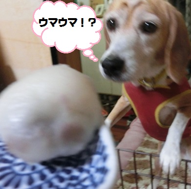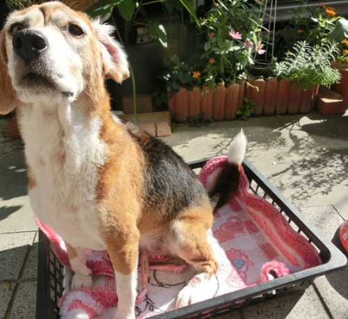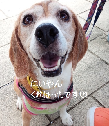 お散歩の途中、「ビーグルちゃん(〃'∇'〃)」と声をかけられました。「もう何才ですか?」と。それから「男の子かな?」と。この尋ねられるセットにももう慣れたねカンちゃん。それよりも、このご夫婦のところにも3月まで16才のビーグルさんがいたんだってお話してくださいました。元気で長生きするんだよって、カンちゃんナデナデしてもらいました。(〃'∇'〃)嬉しかったね。++++++++++++++さて。まっちゅちゃんのグログで『ビーグル切りか部』というのを思い出しました。24時間いつでも入部出来るって書いてあったなぁ。カンちゃんも入部できるかな切り株の上におりこうさんしてると思ったら こんなおやつ目当てだったんだけど良かったかな。 おやつのためならえーんやこーら↓押してね↓にほんブログ村