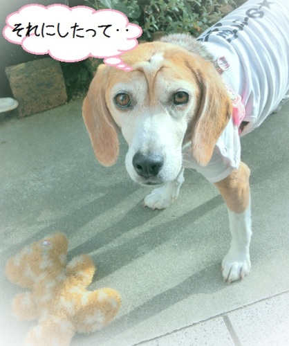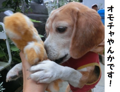 お天気も悪いし運動不足だし、ちょっと新しいおもちゃをしたりしてよーいどん!したりしようかと思いました。カンちゃんはお庭。 ってときにラベルはがすときに音がなっちゃった~もう隠し事はできません。オモチャを持って庭にでると、めっちゃ待ち構えてたカンちゃんがやってきたよ離しませんね~ でも母ちゃんはちょっとおうちでおひるのおうどん、作って来るからね~おもちゃはあるけど、もう営業中止の時間だよ~母ちゃん用事あるからお家に入るよ~こんなところでおもちゃの番人しててもいいけど母ちゃんはお昼ご飯作るからね~バイバイ~しばらくの後、お庭を見てみると確かにいました。ここに。でも食べ終わって庭を見てみるといないし。でも狭い庭、どこにいようがすぐに見つかるよ~見つかって、お散歩となりました。おもちゃ咥えて行くんだよね~新しい時は。^m^カンちゃんもおもちゃ咥えて嬉しそうに見ています。レモンちゃん、走って来てくれたよ~でカンちゃんに駆け寄ってくれたレモンちゃんと逆でレモンちゃんに目もくれず、おばちゃんのおカバン目当て~!?レモンちゃんオモチャちょっとだけ面白かった?カンちゃんがもう少し飽きてから遊ぼうね^^;コックリコックリ船漕ぎながら書いたブログです。^^;大丈夫かな。意味不明ないかな。昨日はすごいたくさんのクリックありがとうです↓押してね↓にほんブログ村