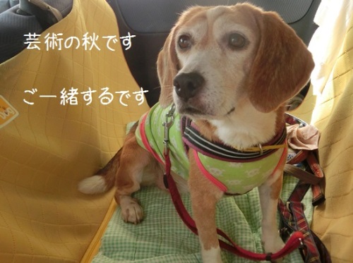 お天気が久しぶりに回復しました。午後、ふうちゃんのママの所属している芸術の作品展を見に出かけてみることになりました。「カンちゃんも是非!」と言ってもらったのでカンちゃんも久しぶりに遠出だよ。おばあちゃんも一緒だよ。カンちゃんはお外で待つだけだけど。と連れて行ったんだけど なんと!!いいのいいのと、作品展のひと(ふうちゃんママのご主人)がリードを持って連れて入りましたいいよいいよ。と言われても、私の心臓が止まってしまうよぉ。大作の並ぶエリアを歩くカンちゃん。台の上を気にするそぶりしてるし。「うわぁ~これ(ふうちゃんママの作品)割っちゃったらどうする~!!」というと「あぁ~これは良いよ」って。|* ̄∇ ̄|イイワケナイデショ というわけで会場のお外でふうちゃんママのご主人がカンちゃんと遊んで待っててくれることになりました。とにかくご機嫌のカンちゃん。足踏んでるよぉ~作家の偉い先生にもご挨拶。がっちりお手手を掴んで、握手もできたかな。 芸術の秋近し。カンちゃんは分かったのかどうか・・・だけど良いものを見せていただきました。 ヒヤヒヤした母ちゃんに↓押してね↓にほんブログ村