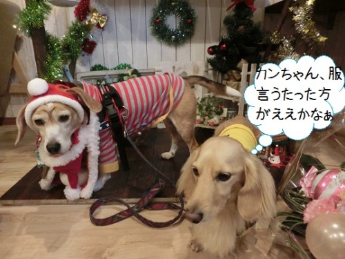 母ちゃん、毎日日中忙しくて心身ともにクタクタ。今日も夕方には体動かないやんかです・・あくびが止まらないでした。犬友の忘年会が夜にあるのも知ってたけどやっぱり無理と一回は断わったけど岡山まで鉄分補給に行った兄やんの帰りは夜中になると連絡。とーちゃんも留守。「なんでや。おいでよ。」 と言ってもらえてせっかくなのに。なによりかんちゃんがカフェ喜ぶの分かってるからやっぱり行こう!!と行ってみました。着く前から、出発する時からもう分かってるのかシッポフリフリのカンちゃん。到着するやいなや大はしゃぎ。 はしゃぎすぎのカンちゃん。マントがすぐに落ちた ジッとしてくれてるんだけど背中が・・・久しぶりのお友達もみんな笑ってるよやっぱり行ってよかったね。ウマウマもできたし♪和尚さんもママの隣でお利口さん サンタさんの日は終わったけどね。今年最後のサンタカンちゃんようん。楽しかったね~。いっぱい笑ったね~カノンのかあちゃんがさぁ・・・・またやらかしたり失言したりでさぁまあ楽しかったし良かったとしてね。また仲間に入れてね。 カンちゃんのしっぽ振りきれなくて良かったよ↓押してね↓にほんブログ村
