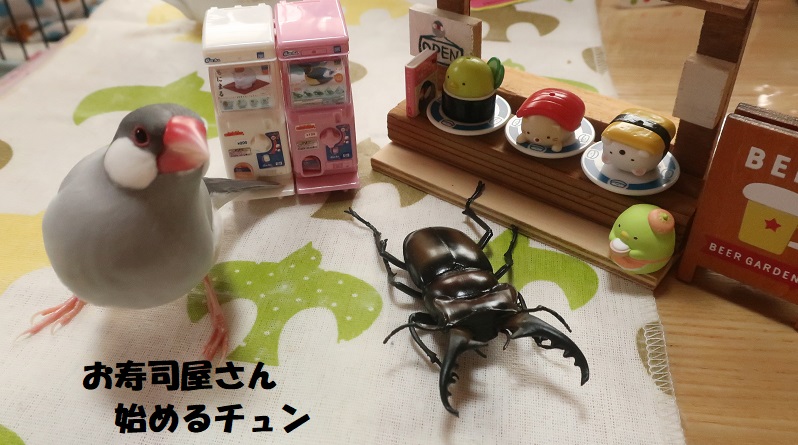 連休最終日。母ちゃんは こんなことをして遊んでいました。とても可愛い文鳥さんのブログでずっと前から大好きなブログ「ブンチョ日誌」で出てくる屋台のミニチュア。売ってないので作ってみたりは~楽しかった♪くまちゃん クワガタも怖くないとは・・・(^▽^)/ヨカッタかんちゃんは母ちゃんがくまちゃんと遊んでるとき呆れて見てる? やきもちやいてる?そんなカンちゃん今朝は近所だと歩かなかったのでとりあえず戻って 庭のきゅうりでご機嫌を取ったりしてでもせっかく暑くない朝なのにもったいないので少し車を走らせて 遊びに行きました。せっかくの連休だもんね~そこなら あっちへこっちへよく歩いてくれたし楽しそうな顔して自分からはしゃいでたので 元気の証拠やったです!たっぷり遊んでうちに戻って まだお庭で遊んでそして・・・・今日も元気なかんちゃんでした。今日もポチっとお願いやんかですにほんブログ村文鳥ランキング