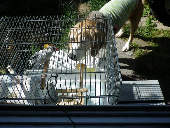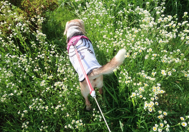 今日の朝は涼しかったので とーちゃん にいやんが 出勤してすぐに車に乗せてお散歩に行きました。記念写真の強要です。写真撮ったらおやつもらえる カンちゃんの頭の中の重要公式です。そういうえばこのごろ 後ろ足ステンステンってならないなぁ。^^私の前を小走りに行くカンちゃんを見ながら思いました。結構たっぷりお散歩をして うちに戻ってもまだ庭でうろうろ。 そして トマトをおねだり。トマトと追いかけるかんちゃんあんよ治ったのかな。と思うけどもう無理はさせたくないのでダッシュするほどは やりません~↑楽しいひとときです♬↑朝から元気にお散歩して遊んだかんちゃんはこのあと ぐっすりねんね。昨日の材木 ひんやり気持ちよいみたい♬ こうなっていると一安心。 お漏らししてもへっちゃら~お昼に お弁当の残りで作ったお弁当をたべているとかんちゃんが ほしいよぉ~とやってきました。卵焼きをあげると ものすごーく嬉しそうに楽しそうに食べました。お弁当の卵焼き。上手に焼けてるのね~いいわね~自分が焼いた卵焼きだけど思っちゃう♪やっぱりお天気は良いに限るね~♬今日もポチっとお願いやんかですにほんブログ村文鳥ランキング