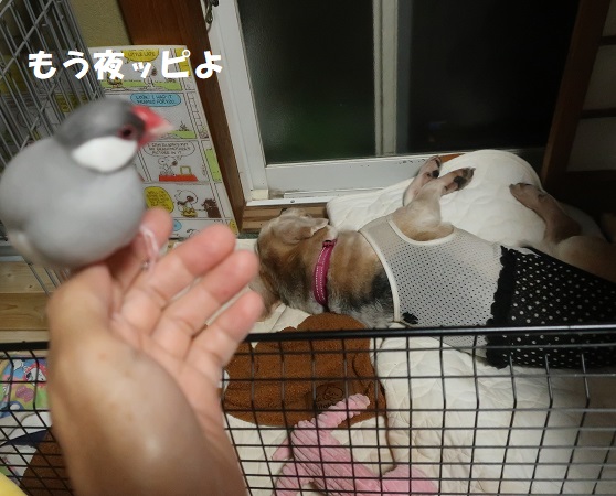 今日も朝んポ 元気に歩いていました。1300歩。あっちへこっちへくんくんしたり歩いたり。うちに帰っても 庭でうろうろしては私の姿を探しています身体を拭いて お部屋のものも洗濯をしてまずはお気に入りの板の上でねんねマット綺麗になったので戻したらそっちへ乾いたので洋服着せてもらって マットの上で寝てましたそのあと こっちのお布団に移動見るたびにあちこち移動して 涼を求めてたのかなぁ。午後には順番にいろんなおかずができたのがカンちゃんの涼しいお部屋に運ばれてきます。かぼちゃ大好きかんちゃん きゅうりまで~たまらんという感じで起きてきました最後6時くらいにお味噌汁が運ばれてきたらごはんごはん~とうるさくなります今日もポチっとお願いやんかですにほんブログ村文鳥ランキング