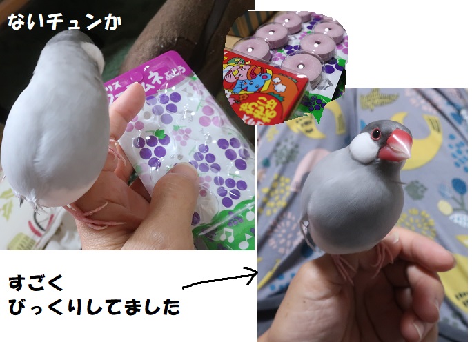 昨日フエラムネなるものを購入。今日はくまちゃんを出した時に私が笛を吹いたらどうするかなぁ?とワクワクしながらくまちゃんをカゴから出してラムネを・・・と手に取るとまさかの空っぽ!!!犯人は兄やん。 兄やんに「全部食べたチュンか?」の文字入りくまちゃん画像をラインで送ったので 夕方 フエラムネ3パックとともに帰ってきました。 そぉ~っと笛を フューフューくらいに吹く程度にしといたほうが安全かも と思うくらいくまちゃんは私の顔を見て驚いた顔をして じぶんもめちゃ歌ってました。(笑)続きはまた今度 くまちゃん 笛楽しいね♬++++++++++++++++今日の朝んポは ちょっとぶりに唐子遺跡へいきました。最近はワンちゃん入っていいエリアが限られてしまったのですがかんちゃんにはそんなことは分かりません。お気に入りのベンチに向かって芝生エリアを歩きに行きたがってしまうので困りますね~。 今日もどうなるかなと思ってバギーも持っていきましたがなんとかワンコOKルートだけ歩かせることができて一安心。無事朝ごはんタイム~♬昨日犬友 和尚君のママにもらったビスケット♪美味しかったね~テンションアップで歩いたよ~広い広場(ワンコOKエリア)も楽しそうでした。芝生のとこのほうがやっぱりひんやり気持ちいいよね~無事 朝んぽでは 2000歩夕方は近所を1000歩歩いて 夕飯時には お皿をくわえて運んできてクレクレ!ハァハァ! うるさかった 元気いっぱい のかんちゃんでしたお盆休みは毎朝あさんぽがゴージャスで楽しいね~今日もポチっとお願いやんかですにほんブログ村文鳥ランキング