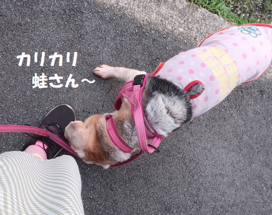 朝んポ 今日もすこし暑さがましだったので元気に歩きました。かあちゃんの前を行くときは元気だよん。 この頃はどんどん先に行っても振り返って私が来てないと戻ってきます。耳が聞こえてないようになってからお目目が頼りのカンちゃんそのお目目に毎朝結構なめやにがべったりかぶさっている日も多くて。今日朝んポの時になでなでしてお目目を見たら 白目結構真っ赤だし。今日は病院につれていきました。傷があるかもしれないですねぇ。と 染色液でみてもらいました。傷なし! でもちょっとひどいので目薬をもらいました。お耳もチェックお耳はセーフのようです。^^帰って目薬です。染色液 流すときとか めちゃ嫌がってあとずさりしているわりにいざやられはじめると じぃっとして我慢してたカンちゃんに「おりこうだね~」ってほめてもらったよ。耳洗浄は苦手だけど目薬はあんまり嫌じゃないんだよね今日もポチっとお願いやんかですにほんブログ村文鳥ランキング
