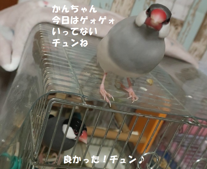 雨でかんちゃんは今日はめっちゃ退屈だったけどこちらは まったく飛び回れるのでいいねでもね。くまちゃん 母ちゃんとこ行きたい行きたい!!出たい出たい!!水浴びしたいしたい!!お気に入りの木のテラス。うんちいっぱいになるから撤去したのがないチュン・・・のどれかがストレスだったのかなぁ。羽をひっぱってくちゃくちゃにしてました。水浴びいっぱいしたいだけできるようにしてカゴから出して↑好き放題させてあげて木のテラスも元に戻したら 治ったようです。 良かったチュンね。++++++++++++かんちゃんは ちっこだけして あさんぽはしないやんかです~行かないです~!!と道でだだをこねていたら なんと兄やんが来た・・・それだと歩きだすのってなんだろか・・・スタートさえすればれもんちゃんのおうちまで歩いてまぁまぁお散歩880歩。できました。あとはお庭で。雨の止んだ間や小降りの時にちょっと遊んだりの一日でした。↓月曜日の動画明日はあさんぽできるかな。今日もポチっとお願いやんかですにほんブログ村文鳥ランキング