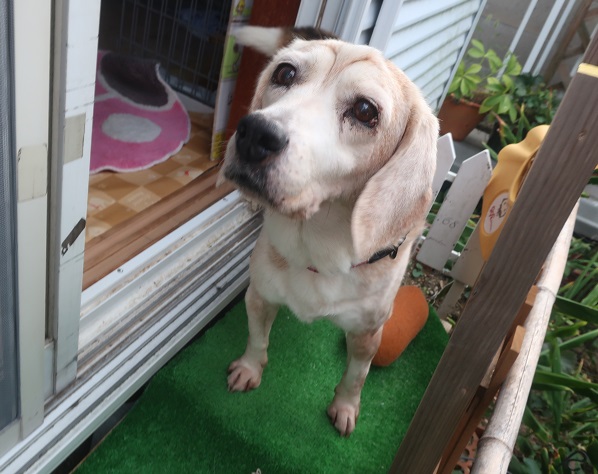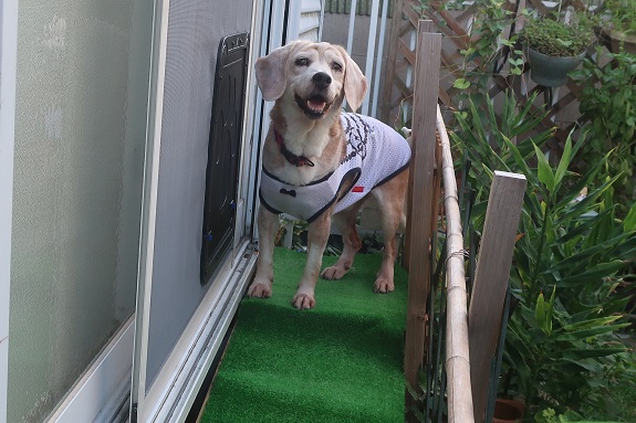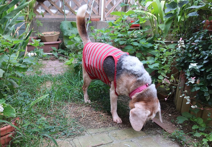 ステロイドの注射の影響がようやく抜けて来たのか多飲多尿がおさまってきました。と同時に逆くしゃみの回数がちょっと増えました。 飲みすぎが気になっていたので良かったです。今日は朝から暑くて。そんな朝は朝早くからスタートしてたんですけど今日はどうも体が重たかったから8時くらいまで休憩してからと思って休んでいたら 気温が上がってしまってかんちゃん 嬉しそうに通用口から出てきてはみたもののお散歩は行かないというので庭でメダカのお世話をすることにしてかんちゃんはお庭をうろうろしてもらってお散歩の代わりになるかしら?かんちゃんがうろうろしてるお庭で庭いじりしたりするの母ちゃんの幸せタイムなのよカンちゃんのお庭。今の季節は背丈のたかいお花がいっぱいでなんとなくうっそうとしてしまうからいまいちです。今咲いてるのが終わったらリニューアルしようかなぁ。おやつタイムにしましょう~きゅうりだよ~!めっちゃ期待に満ちた顔のかんちゃんお手!! って何回言ってもなかなかお手しなかったけどやっとしたのであげました。お耳が聞こえてないもんね。 でも 手差し出したらするかな?と思ったんだけどその私の手をペロっとなめてくれました。それでも嬉しかったわぁ。次は夕飯時。さつまいも もらったかんちゃんでした。明日はお散歩たっぷりしたいねぇ。タイミング逃さないようにしなくっちゃ今日もポチっとお願いやんかですにほんブログ村文鳥ランキング