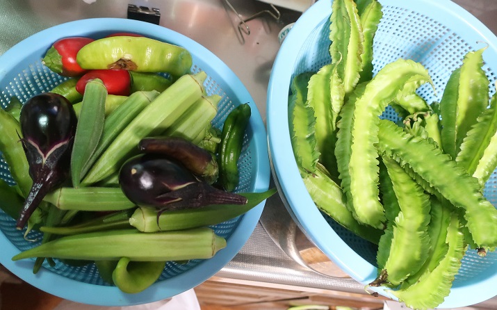 畑にはまだもうひと頑張りの夏野菜が出来ています。かなり秋めいて来たとはいえ 今朝も暑かったねぇ~日影を選んで歩こうね。といってもすぐに日向へ行ってしまうカンちゃん。暑くないのかなぁ今日のお弁当は全員このお肉のおかず。しそ+味噌+ごま油+みりん+酒 あたりをお鍋で火を通してペーストにしたものをお肉に塗ってえのきと一緒に巻き巻き~ 美味しかったです。カンちゃんも一緒にお昼はクレクレして。そして寝てました。 お皿に頭入れて寝てますね~夜。ナシを向いたら ぱた!!っと目を覚まして 起きて来ましたね~鼻は100点ですな!!美味しいナシ!毎日の楽しみです。今日もポチっとお願いやんかですにほんブログ村文鳥ランキング
