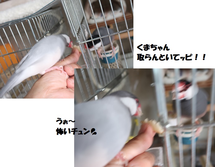 久しぶりにカンちゃんカフェで食べてみたよ。 なんという嬉しそうなパクリ!!ってしてる写真でしょう。おととい そろそろ締め切りだわぁと 毎年応募しているご長寿コンテストだったかな。応募しなくちゃとおもったら 締め切りだった・・・・まじかぁ・・・と結構がっくりしていたら昨日 まもなく締め切りですってメールが!!!あら~!? なんかの間違えだったのね。やった~!と選んだ3枚がこちらさっきのリンゴパクリ!!の写真でも良かったやん~なんてねぇ。家族会議の結果3番で応募しました。無事完了。^^全員載せてもらえるので楽しみです。さて。カンちゃんカフェですが レタスくらいしかないカフェですけど久しぶりにやってみました。退屈だもんね。 安静かんちゃん上り下りは抱っこで。と思ったけど一瞬でのぼってしまったので降りる時だけはだっこしました。かんちゃんにあげられるように ロールケーキがりんごを刺したパフェ風になりました。かんちゃん大喜びでした。また カフェに行けるといいね~で。午後にもう一回ちっこっこ漏れちゃってまた 洗ったクッションに交換。 なんとか乾いて助かります。雨は困ります~明日病院だよ。ステロイドさらに減らしてもらえるとイイね今日もポチっとお願いやんかですにほんブログ村文鳥ランキング