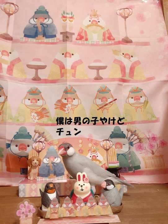 今日はひなまつり。くまちゃんは男の子だけどね。つばめちゃんが撮影する前に現場のチェックしてただけだよ~さて。つばめちゃんも可愛いぃポーズ決まったね。そして 今日はぬくぬく。カンちゃんカフェを滑らないようにクッション置いてお雛様も並べようかなってしたらカンちゃん登場だよ気に入ったようで日向ぼっこしてました。久しぶりだね。ここ。ちょっとお着物 袖通すのはちょっと足ふんばったりできるか怖いから羽織るだけにしとこっかな。それでも綺麗よお庭でひなまつり 出来て良かったなぁ。嬉しいな。夜には ひな祭りのお祝いプレート。だよ。飼い主は 大きなちらし寿司作ったからね。かんちゃんにもおすそ分け。 お吸い物に入れた鶏むねにくのスライスに春のおまめさん イチゴに錦糸卵。^^美味しそうに食べてくれました。ひな祭りケーキは・・・?ないのかな?この笑顔に見覚えは?昼間にかんちゃんと二人で女の子二人でひなケーキ食べたねそれは明日にしまーす今日もポチっとお願いやんかですにほんブログ村文鳥ランキング