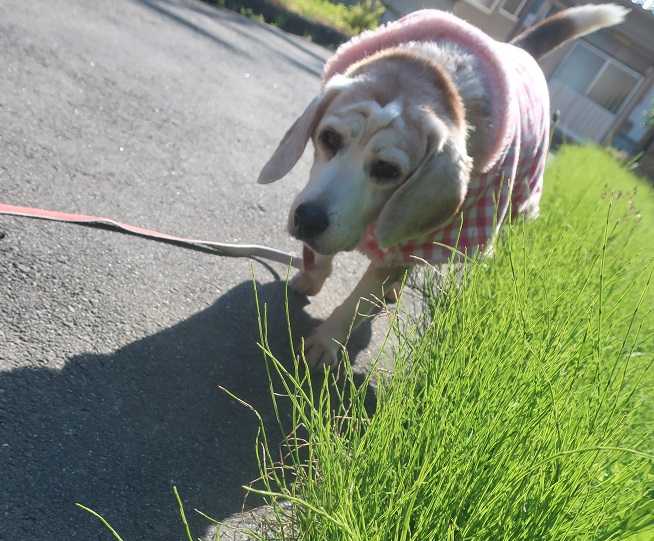 ご機嫌で歩きはじめるカンちゃんの写真↓~今朝も近所を20分ほど歩いて庭に戻りいったん部屋に入ってまた庭に出てウッドデッキに上がったりして部屋に戻り・・・そのあともまた 外に出る出ると窓をがりがり・・・(ねぇ母ちゃん~あたちこんなに暴れるとヘルニア再発したりして~ 怖くないですか~?)なんてカンちゃんは言ってないと思うんですけど・・・仕方ないので車に乗せて広場へお連れ致しました嬉しそうに歩きクン活をしバギーと並んで歩いて逆くしゃみが始まったのでバギーに戻して(バギーの上でも歩いています)滞在時間は20分程度だったけどうちに帰ったらやっと寝てくれました母ちゃんの朝は早くてお弁当も作るから今までならかんちゃんのトイレのあと カンちゃんが寝るので私も10分ほどタイマーをかけて寝る日もありました。それでシャキッとするのにねあれこれして、運転までしてからですけど私もようやく10時半過ぎて 20分タイマーで寝れましたかんちゃんはあっちへ転がり こっちへ転がり寝ていました物音で起きたとこ↓さっきの画像(寝るとこ)↓ パジャマ着て 顔がかくれるほど被せると 寝やすいみたい。元気が有り余って眠れないかんちゃんに元気会が一番やでって今日もポチっとお願いやんかですにほんブログ村文鳥ランキング