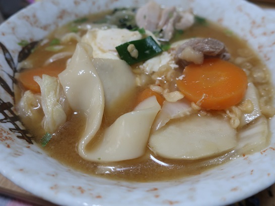 お昼はほうとううどんでした。 とーちゃんが在宅ワークの日は一人の昼ご飯よりも