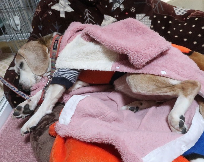 危ないわぁ~ カンちゃん寝てるし毛布かぶせてあるけど。